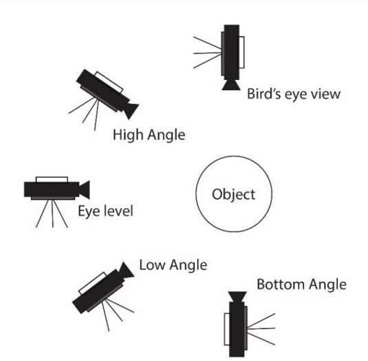 เกิดจากความสัมพันธ์กันระหว่างระดับการตั้งกล้องถ่ายกับวัตถุที่ถ่าย การเลือกใช้มุมกล้องในระดับต่างๆ จะเกิดภาพที่แตกต่างกันไป ควรแบ่งมุมกล้องดังนี้